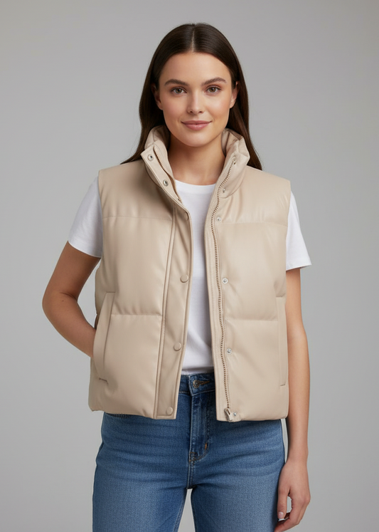 Damen Steppweste mit hohem Kragen und Druckknöpfen