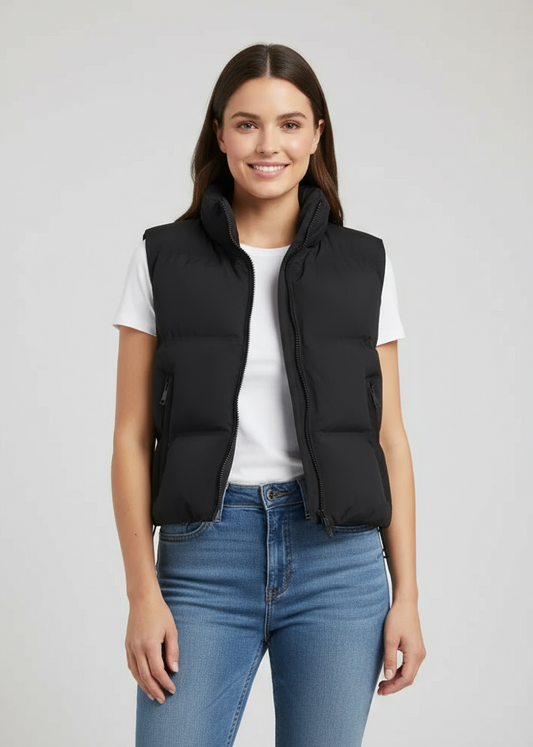 Damen Steppweste mit hohem Kragen und Reißverschluss