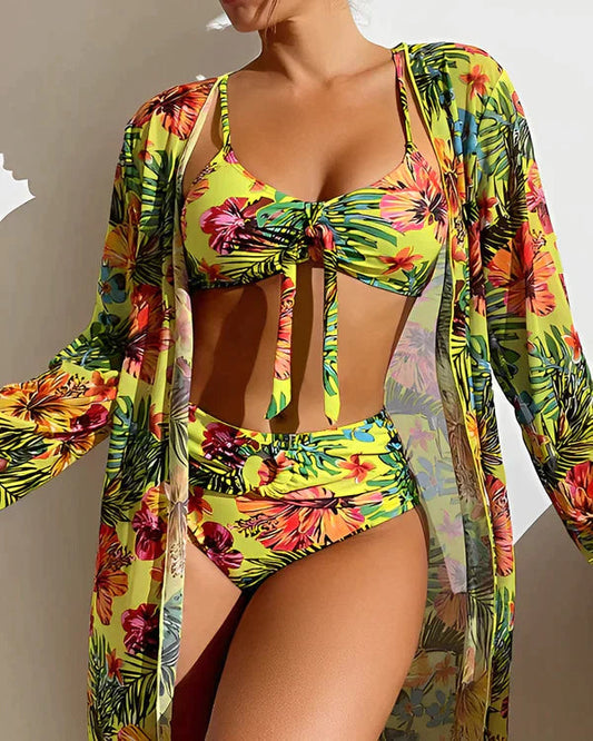 Bequemer Damen Retro-Bikini – hochgeschnitten, mit Stranddruck, für den Sommer