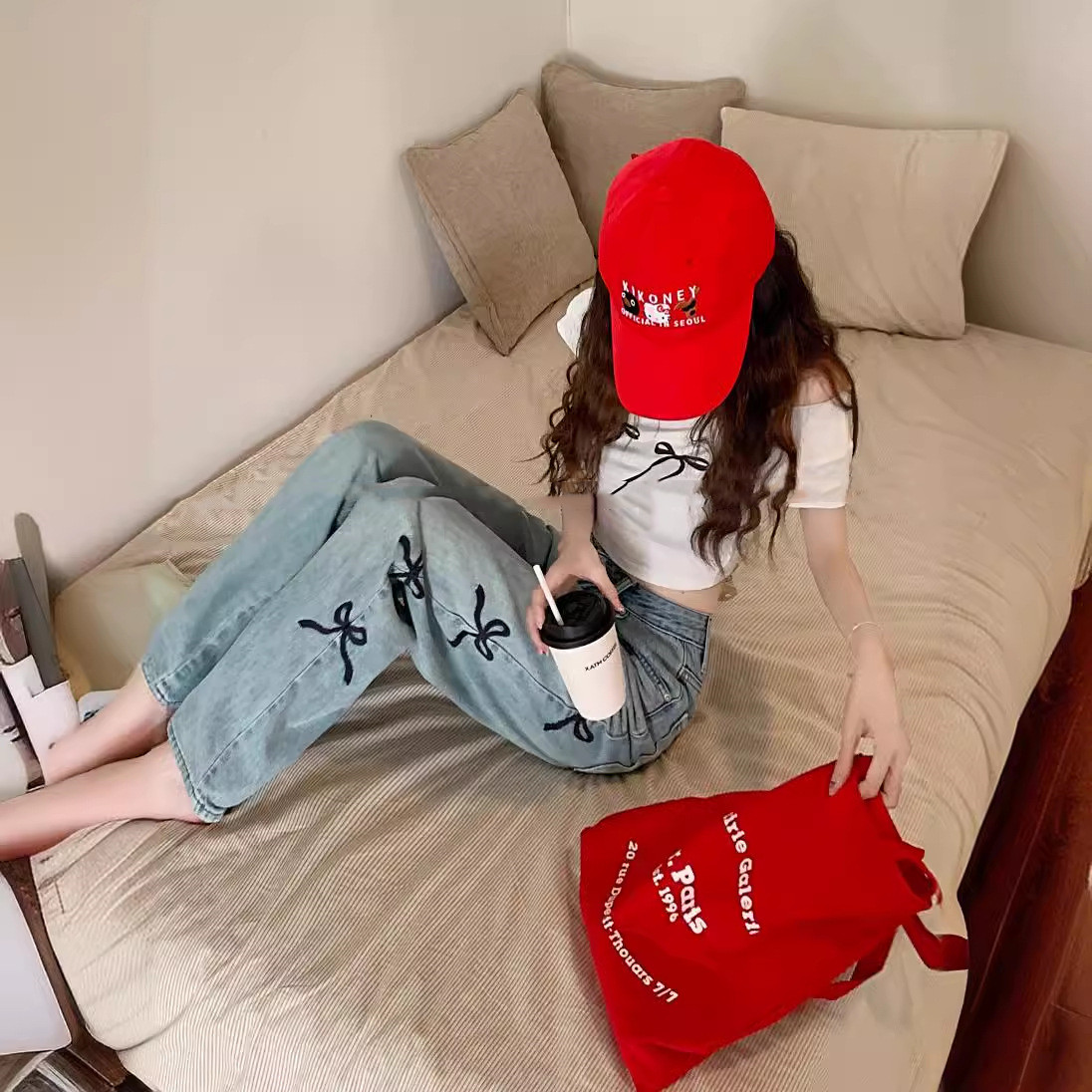 Die trendigen lockeren Jeans aus Denim bieten sowohl Stil als auch Komfort. Mit ihrem modernen Schnitt und den femininen Schleifdetails sind diese Jeans perfekt für den Alltag oder besondere Anlässe, sodass Sie mühelos schick aussehen.