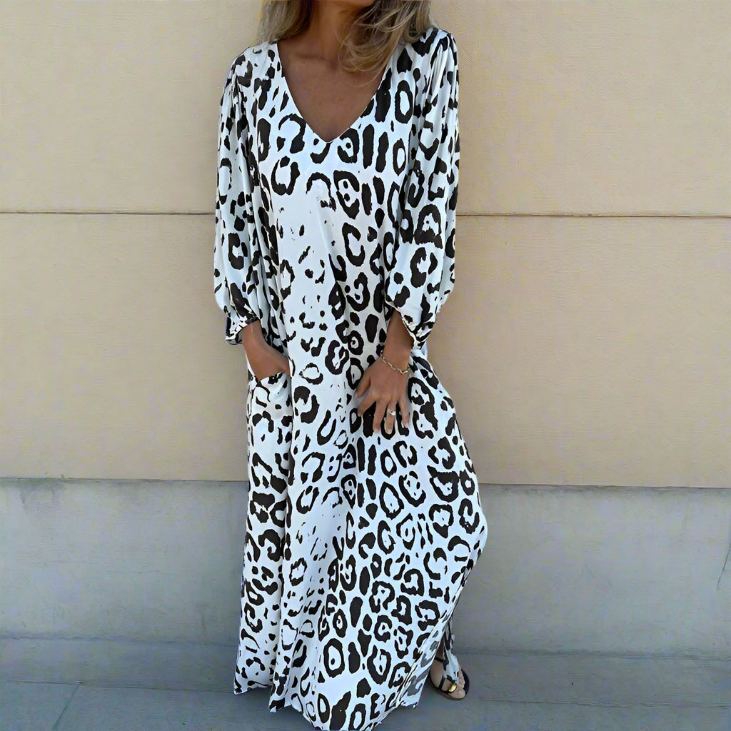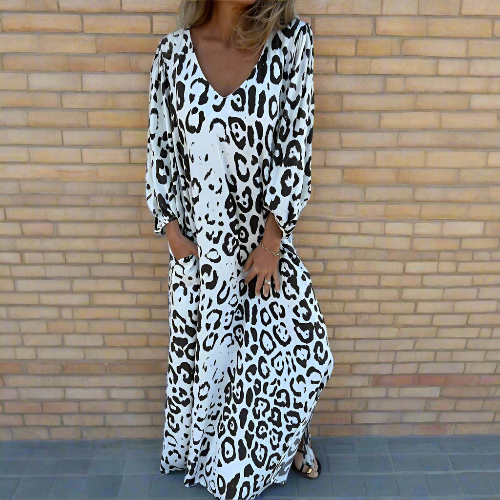 Dieses mit Vintage inspirierte lange Kleid kombiniert klassischen Charme mit moderner Eleganz und ist die perfekte Ergänzung für jede Garderobe. Sein anmutiger Schnitt und das einzigartige Design sorgen dafür, dass Sie sich sowohl bei Freizeitausflügen als auch bei besonderen Anlässen hervorheben.
